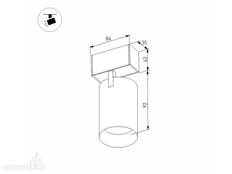 Светильник поворотный для магнитных треков шириной 45 мм, 12 Вт. Цвет свечения: Теплый белый 3000 K (световой поток 900 лм) / Дневной белый 4000 К (световой поток 1000 лм).