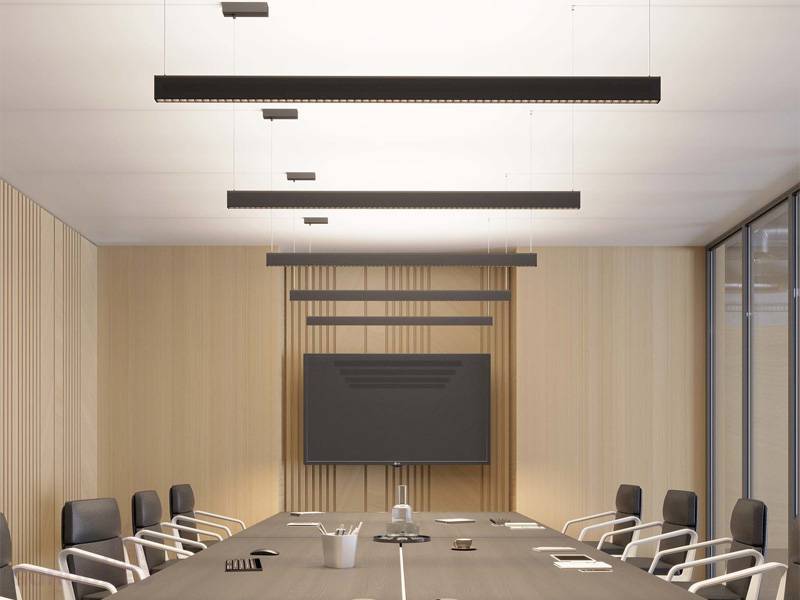 Подвесной линейный светильник. Мощность 24 Вт, св. поток 1440 лм, 60 лм/Вт, дневной 4000 K, теплый белый 3000 К, CRI>90, угол 38 + 100°, напряжение питания 230 В. Черный линейный корпус из алюминия, экран пластик, степень защиты IP20. Размер: длина 578 мм, ширина 24 мм, высота 60 мм. Монтаж подвесной. Драйвер 24-42 В, 700 мА, пульсация <1%.