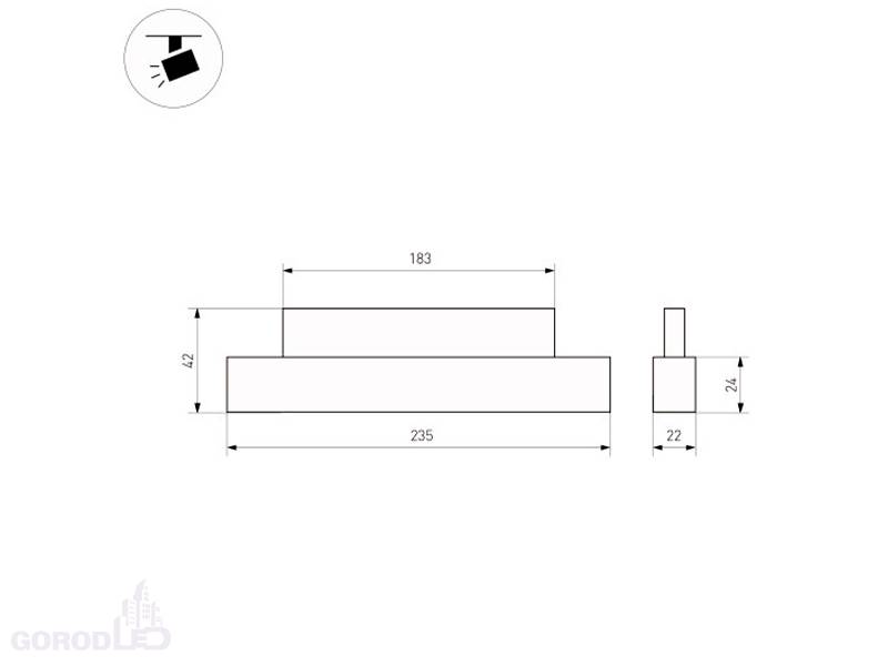 Размер: (ДхШхВ) 235 х 22 х 42 мм. Монтаж на трек MAG-ORIENT. Пульсация <1%.