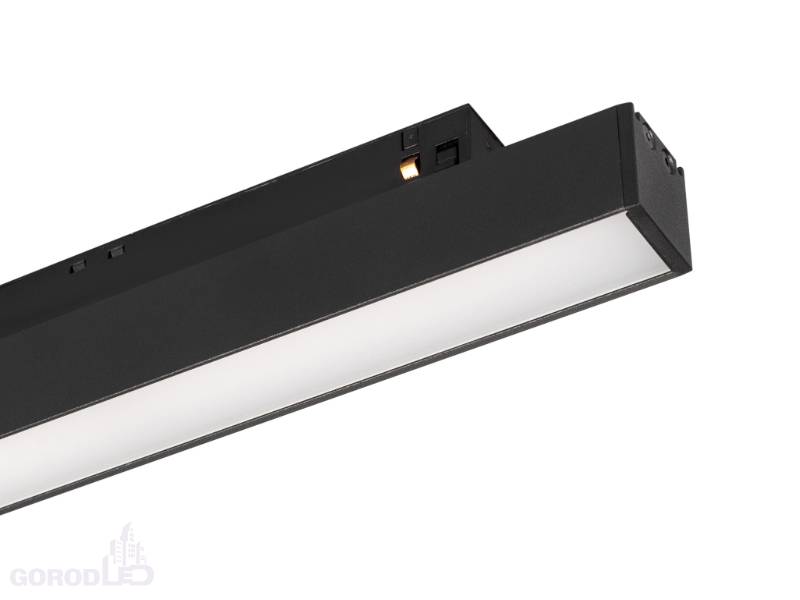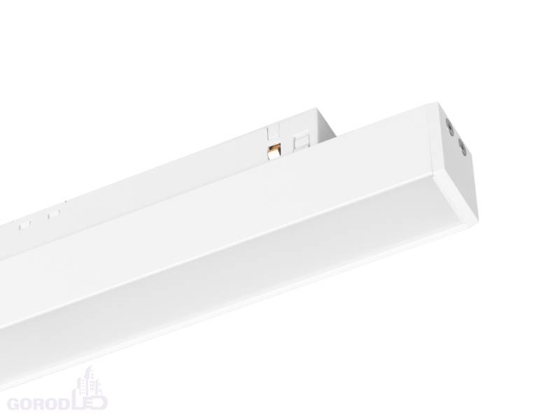Светильник для магнитных треков MAG-ORIENT шириной 26 мм. Мощность 12 Вт, св. поток 660 лм, 55 лм/Вт, дневной 4000 K, теплый 3000К, CRI>90, угол 80°, напряжение питания 48 В. Черный или белый прямоугольный корпус из металл, экран поликарбонат, степень защиты IP20. Размер: длина 462 мм, ширина 22 мм, высота 42 мм. Монтаж на трек MAG-ORIENT. Пульсация <1%.