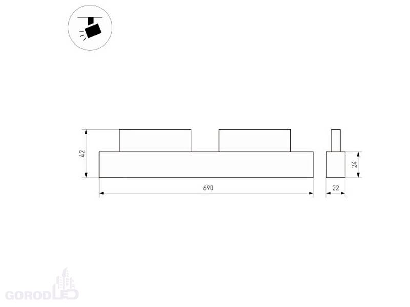 Размер: (ДхШхВ) 689.5 х 22 х 42 мм. Монтаж на трек MAG-ORIENT. Пульсация <1%.