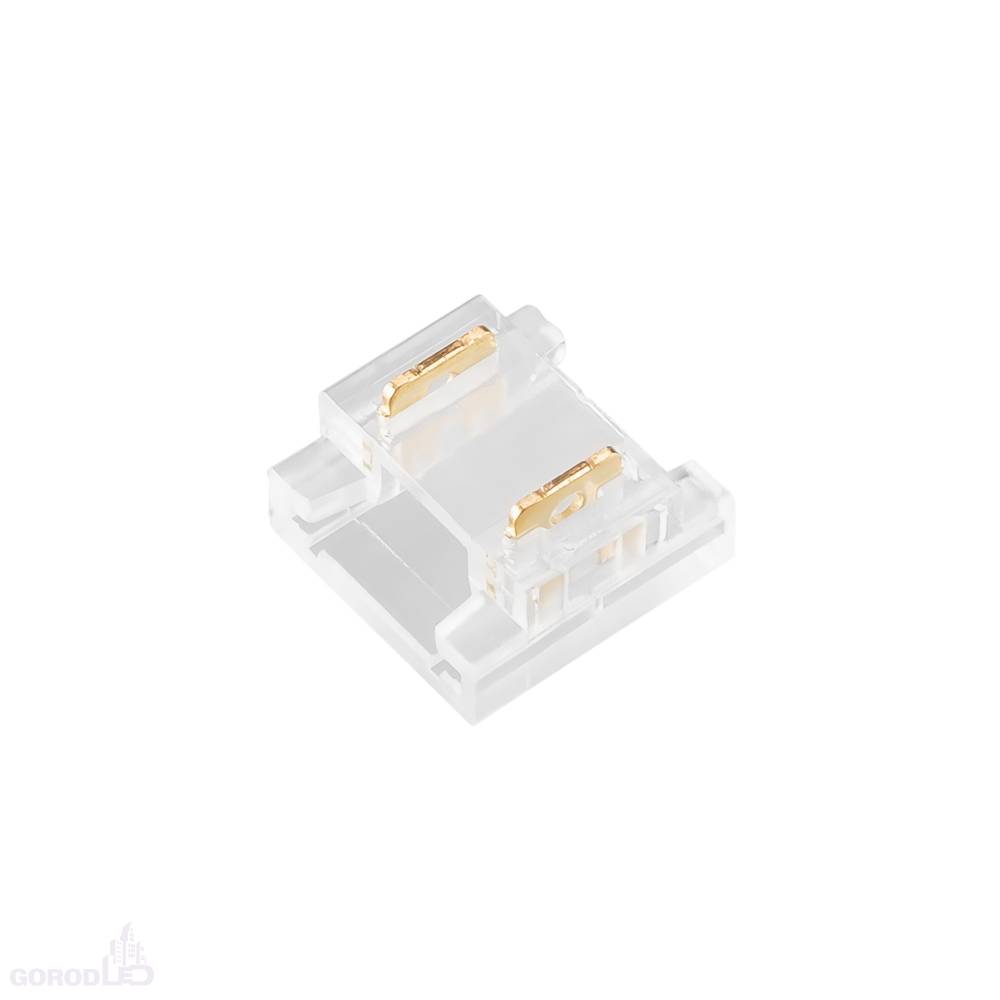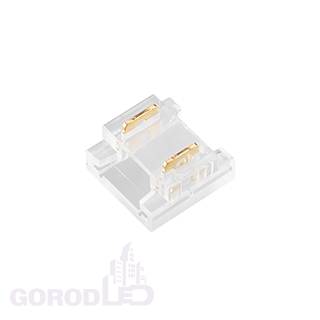 Одиночный коннектор для соединения 2-х отрезков открытых светодиодных одноцветных лент (2216, 2835, COB) шириной 8 мм. Материал - прозрачный пластик. Обеспечивает соединение без видимых разрывов. Максимальный допустимый ток 3 А, максимальное напряжение 24 В, степень защиты IP20. Цена за 1шт, 10шт/пакет.