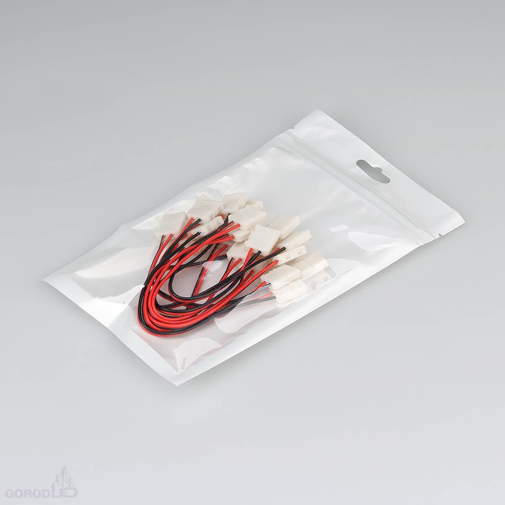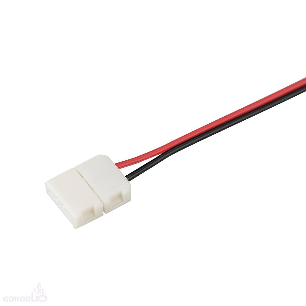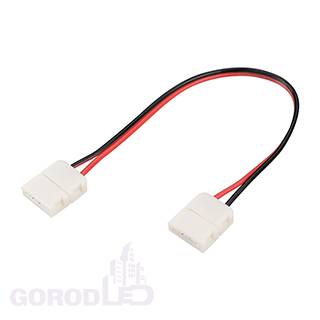 Двойной коннектор с проводом 15см для соединения 2-х отрезков открытых светодиодных одноцветных лент (5060) шириной 10мм. Материал - пластик. Максимальный допустимый ток 3А, напряжение до 50 В. Цена за 1шт.