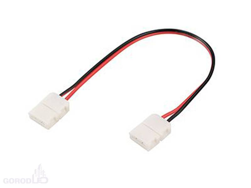 Двойной коннектор с проводом 15см для соединения 2-х отрезков открытых светодиодных одноцветных лент (3528, 2835) шириной 8мм. Материал - пластик. Максимальный допустимый ток 3А, каналы 1ch-Mono (dimmer), напряжение до 50 В. Цена за 1шт.