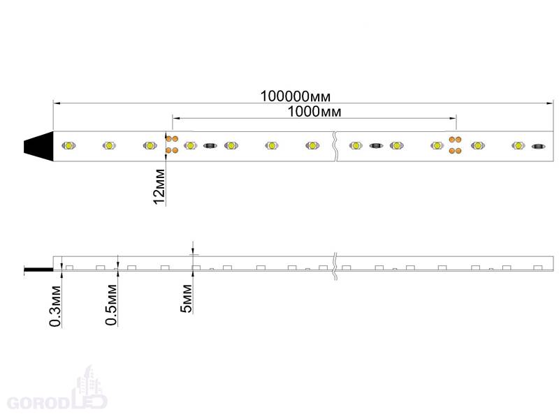Двухслойная плата, белого цвета. Монтаж ленты необходимо осуществлять с применением специальных силиконовых монтажных скоб и коннекторов.