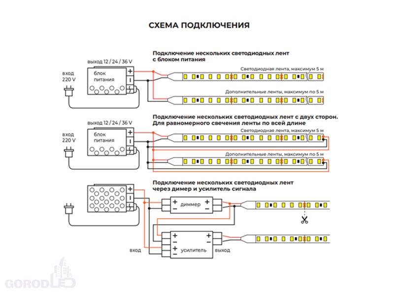 Схема подключения Светодиодная лента LP IP22 2835/160 LED CRI90