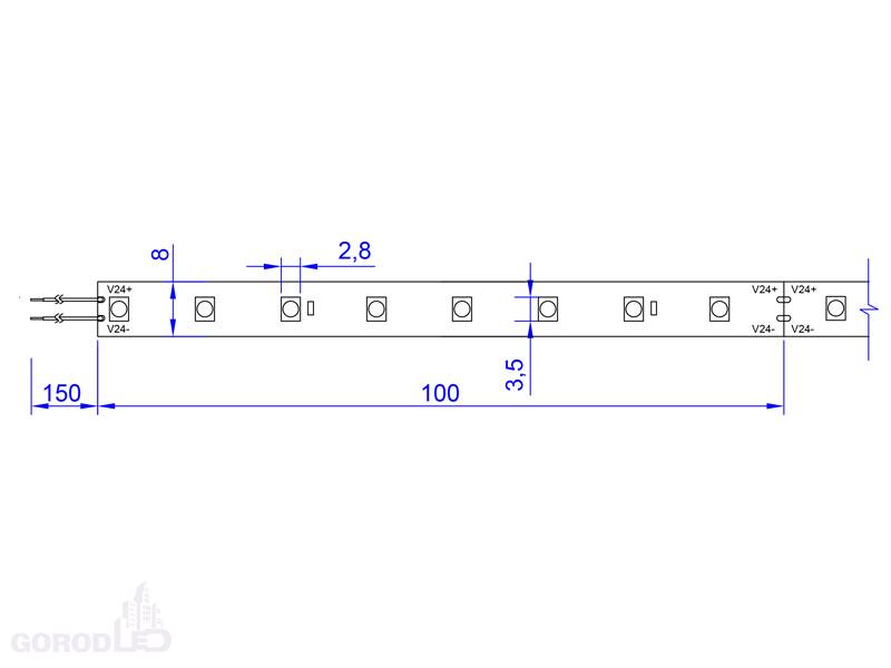 Двухслойная плата, белого цвета, имеет клеевой слой 3М с обратной стороны. Наличие клеевого слоя позволяет существенно упростить монтаж ленты, практически к любым жестким поверхностям.