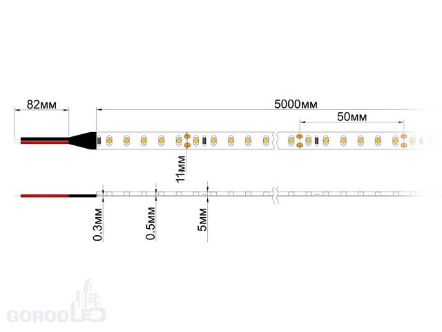 Возможные варианты свечения: холодный белый, нейтральный белый, теплый белый, красный, желтый, синий, зеленый. Длина 5м, на катушке; Разрезается, минимальный отрезок 25 мм, 3 светодиода; Провода для подключения с каждой стороны; Подключайте только к стабилизированным источникам напряжения 12/24В.