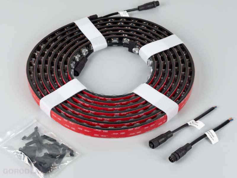 Гибкая светодиодная лента Wall Washer предназначена для заливающей подсветки стен, фасадов, наружной подсветки зданий. Каждый светодиод ленты снабжен вторичной оптикой для фокусировки света. Лента имеет пылевлагозащиту по стандарту IP67, может применяться как для интерьерной, так и для фасадной подсветки. В комплекте к ленте: силиконовые клипсы 10шт, силиконовые заглушки 2шт, силиконовые заглушки под провод 2шт, коннектор для подключения.