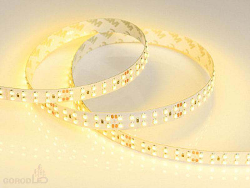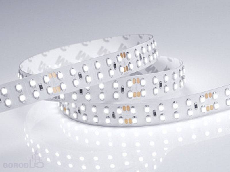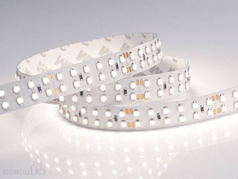 Светодиодная двухрядная лента класса LUX Гибкая плата белого цвета, на двухстороннем скотче 3М. Светодиоды smd 3528 максимальной яркости, угол 120°. Срок службы более 50 000 часов, при соблюдении правил монтажа и эксплуатации.