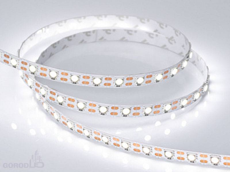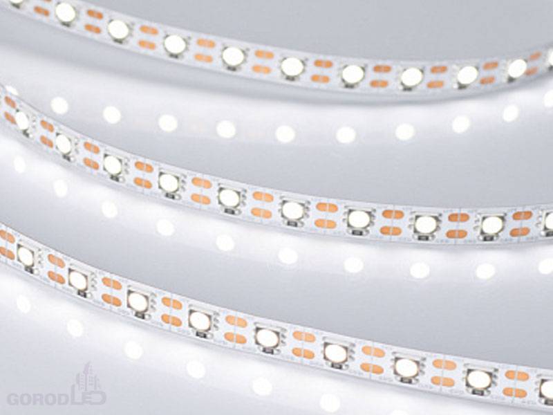 Гибкая лента LUX, разрезается по 1-му светодиоду smd 5060 (20 лм), 72шт/м (360шт на 5м), белая плата 10мм, скотч 3М. Питание 12V, макс.мощность 16,8 Вт/м (84 Вт на 5м), угол 120°, высокая цветопередача CRI=95..98. Размеры 5000х10х2мм. Мин.отрезок 14мм-1 светодиод. Цена за 1м.
