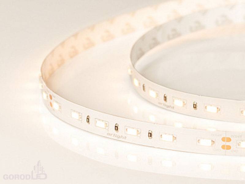 Варианты свечения: холодный белый, нейтральный белый, теплый белый. Длина 5м, на катушке; Разрезается, минимальный отрезок 100 мм 6 светодиодов; Провода для подключения с каждой стороны; Монтаж светодиодной ленты необходимо производить на теплоотводящую поверхность, алюминиевый профиль или полосу. Подключайте только к стабилизированным источникам напряжения 24 В.