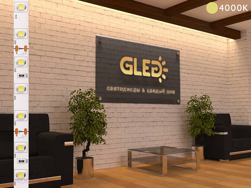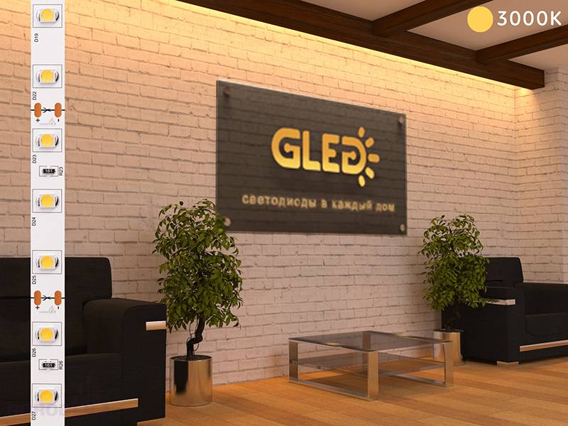 За счет очень плотного (60шт. на 1м) размещения диодов SMD 3528 на плате, светодиодная лента GLed IP22 3528/60 LED равномерно освещает поверхность, которая находится рядом. Легко управляемая и гибкая лента монтируется в сухом помещении или в устройствах, защищенных от попадания влаги.