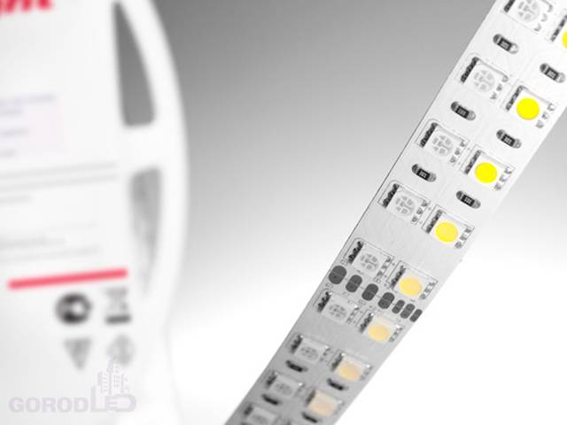 В ленте RT 2-5000 (5060, 720 LED), один ряд RGB диоды, другой холодный/нейтральный/теплый белый, благодаря чему можно создавать различные пастельные тона свечения. Управление цветом производится при помощи контроллера