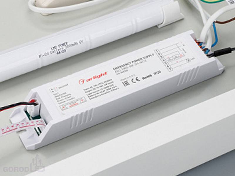 Светодиодный светильник с блоком аварийного питания. Мощность полная 23 Вт, мощность в режиме заряда и контроля АКБ 3.5 Вт.