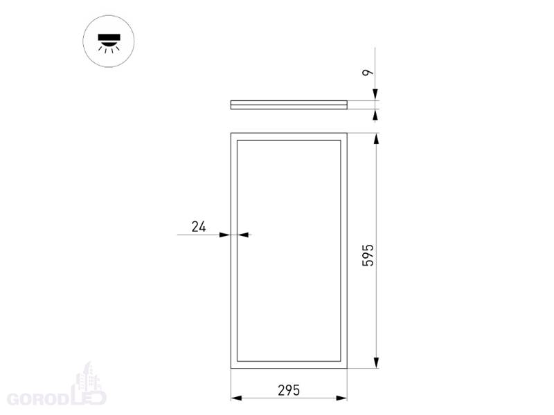 Светодиодная панель с торцевой засветкой (edge-lit). Мощность 28 Вт, св. поток 3000 лм, 100 лм/Вт, теплый 3000 K, дневной 4000 К, CRI>90, угол 120°, напряжение питания 230 В. Белый квадратный корпус из алюминия, экран PS, LGP PMMA, степень защиты IP40. Размер: длина 595 мм, ширина 295 мм, высота 9 мм. Монтаж встраиваемый, установочное отверстие длина 575 мм, ширина 275 мм. Драйвер 27-42 В, 700 мА, пульсация <1%.