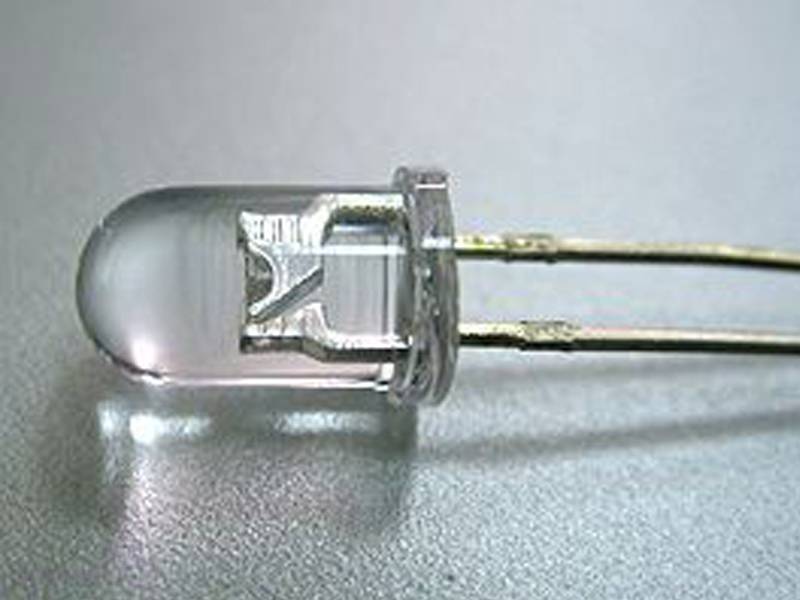 Выводной светодиод 5мм,прозрачная линза,яркость1000-2000mcd, 3.0-3.8v, 20deg, срок службы 10 000 ч.