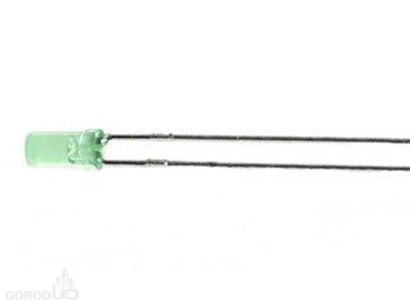 3мм прозрачный зелёный 525nm, 1000-2000mcd, угол 100°, цилиндр диам.3 x высота 6,1мм (без фланца).