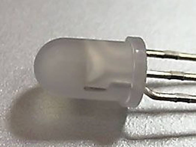 Выводной светодиод 5мм,белая матовая линза, красный 630нм /зеленый 570нм, 3 вывода,яркость 50-100mcd, V(f)=1.9-2.3v,угол 30-40°. Общий катод.