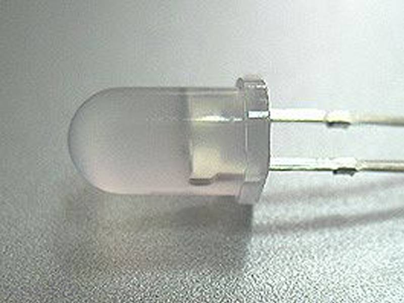 Выводной светодиод 5мм, (линза матовая белая), IV=4000-6000mcd при If=20mA, VF=3-3.5v. Угол 50-60 градусов.