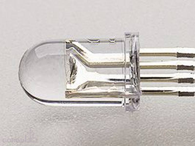 Выводной светодиод 5мм, 4 вывода, общий катод, белая матовая линза,угол 65 °,VR=5V ,IF=20mA .
