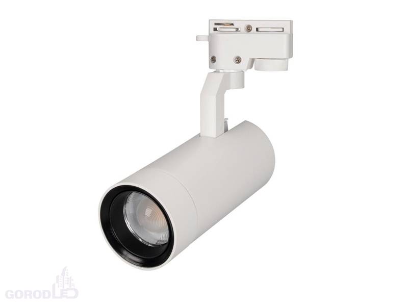 Подвесной одинарный трековый светильник LGD-GELIOS-2TR-R80-30W White6000 (WH, 20-60 deg, 230V) мощностью 30 Вт с белым цветом свечения (6000 К) и высоким индексом цветопередачи CRI>90 для создания локального и акцентного освещения в квартирах, офисах, музеях, магазинах и других помещениях с высокими требованиями к качеству света.