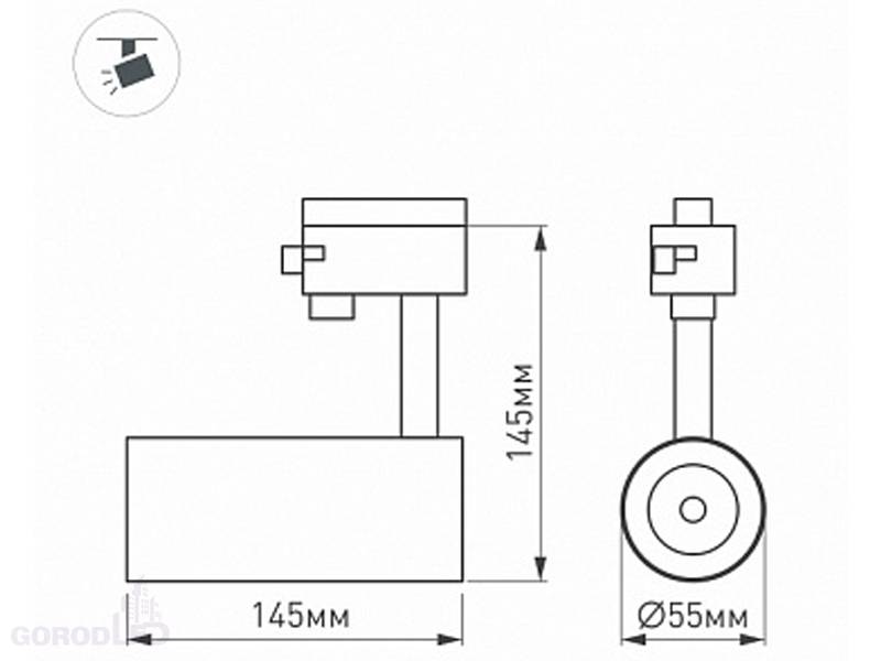 Размер: диаметр 55 мм, высота 145 мм. Монтаж на трек 1-фазный. Драйвер встроенный 27-38 В, 260 мА., пульсация <1%.