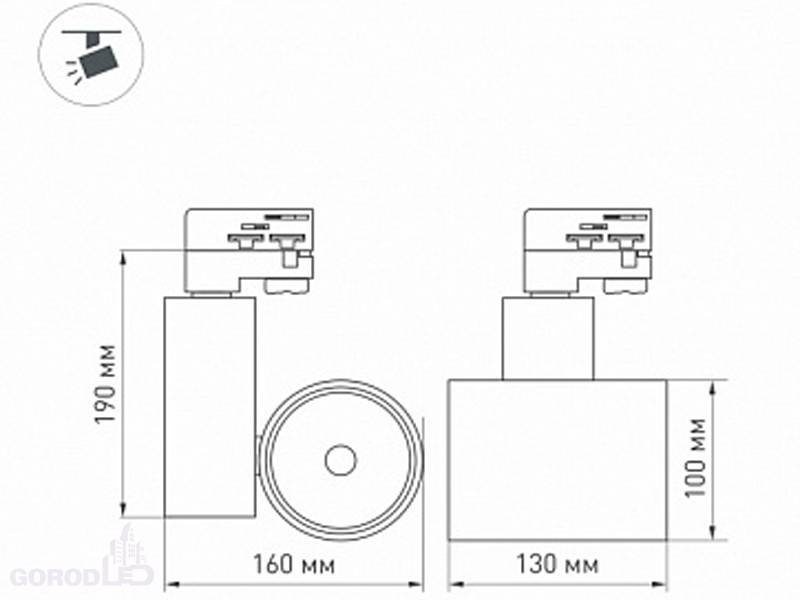 Корпус круглый, металл, цвет белый, IP20. Размеры: (DxHxL) Ø100 х 190 х 130 мм.
