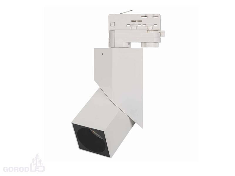 Корпус поворачивается на 90° относительно потолка и вращается на 355° вокруг своей оси. Светильник легко устанавливается на 3-фазный трек серии LGD и может перемещаться вдоль шинопровода, что позволяет мгновенно менять световые акценты в помещении. Подключение светильника осуществляется с помощью встроенного драйвера напрямую к сети 230 В.
