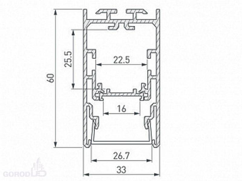 Габаритные размеры (L×W×H): 2500 x 33 x 60 мм.