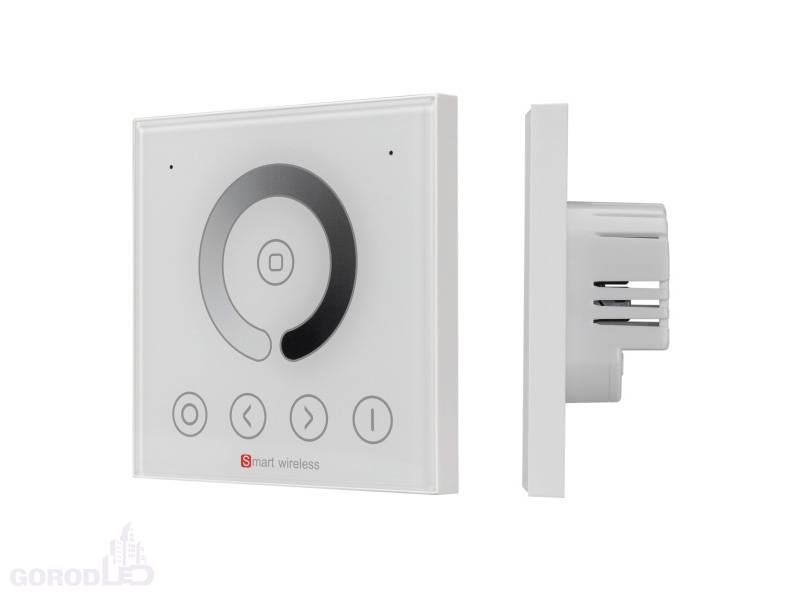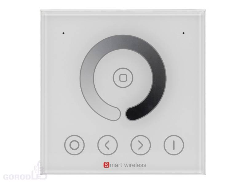 Встраиваемая сенсорная панель (Европейский стандарт) для управления одноцветными светодиодными лентами, цвет белый. 4 параллельных канала, питание DC 12-24V, ток нагрузки 4x4A, мощность нагрузки 192-384W. Габариты 86 х 86 х 33 мм.
