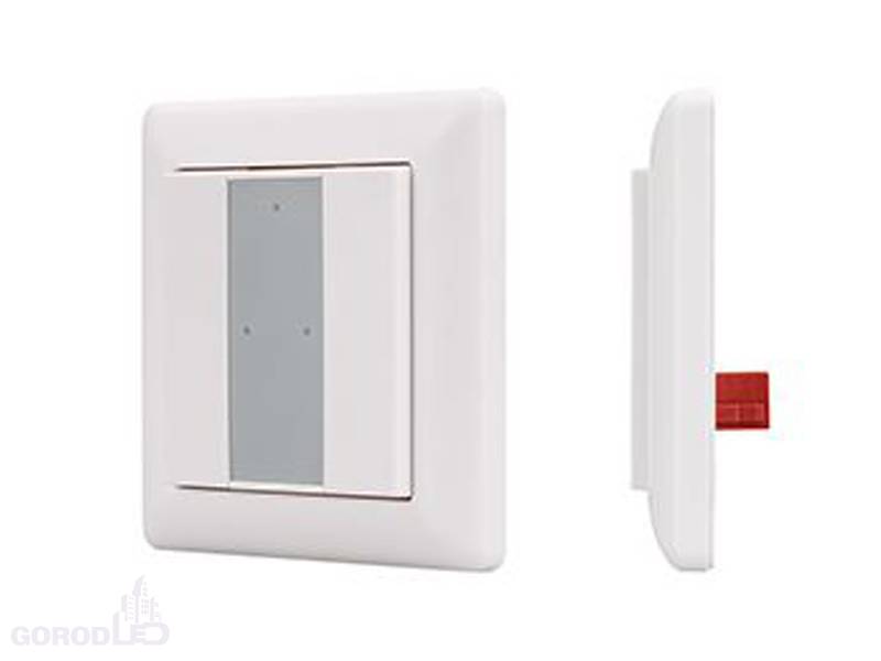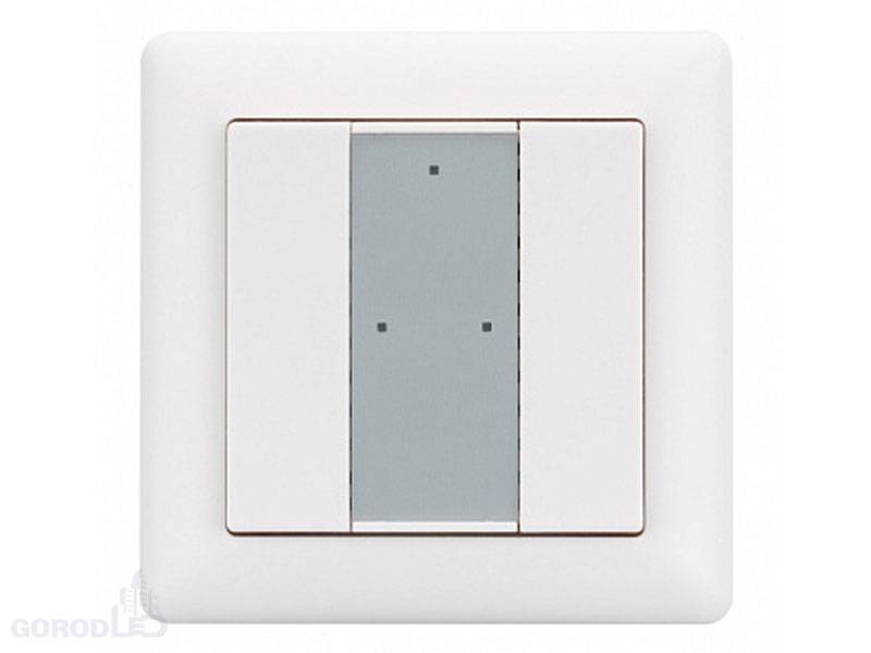 Панель 2-х кнопочная, стандарта KNX. Питание от шины KNX 21-30 VDC, ток 12mA. Сменная рамка (GIRA, JUNG, BERKER) Размеры 55,5 х 55,5 х 13 мм.