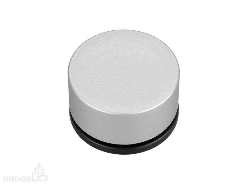 Роторный радиопульт серебристогоо цвета для управления одноцветными источниками света. 1 зона управления. Питание 3VDC (AAA*2). Габариты 60 х 60 х 35мм. В комплекте магнитное крепление.
