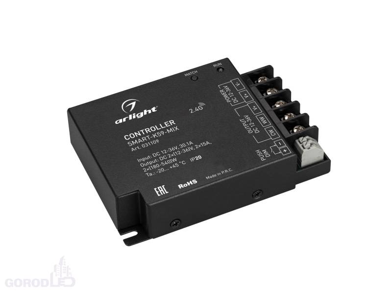 - Контроллер SMART-K59-MIX (12-36V, 2x15A, 2.4G)