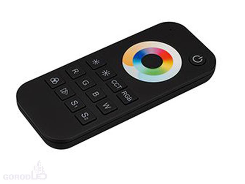 Кнопочный радиопульт с сенсорным кольцом 2.4 ГГц черного цвета для управления DIM/MIX/RGB/RGBW источниками света. 1 зона управления, 2 слота памяти пользовательских настроек, выбор цвета и типа управления с помощью сенсорного кольца. Питание 3 VDC (AAA*2). Габариты 122 x 53 x 18 мм. Управляет контроллерами и панелями серии SMART (поставляются отдельно).