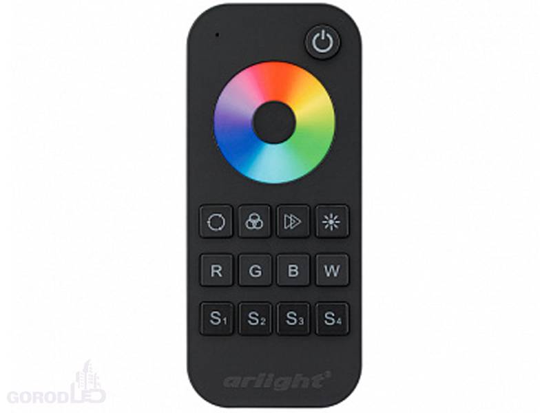 Кнопочный радиопульт с сенсорным кольцом 2.4 ГГц черного цвета для управления RGBW источниками света. 1 зона управления, 4 слота памяти пользовательских настроек, управление цветом с помощью сенсорного кольца. Питание 3 VDC (AAA*2). Габариты 122 x 53 x 17.5 мм. Изготовлен из пластика с покрытием Soft Touch. Управляет контроллерами и панелями серии SMART (поставляются отдельно). Каналы -4-RGBW. Гарантия 5 лет.
