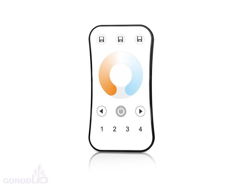 Кнопочный радиопульт с сенсорным кольцом 2.4 ГГц белого цвета для управления MIX (CCT) источником света. 4 зоны управления, выбор температуры свечения с помощью сенсорного кольца. Питание 3VDC (CR2032). Габариты 107 x 58.5 x 9 мм. Изготовлен из пластика с покрытием, защищающим от загрязнения. Управляет контроллерами и панелями серии SMART (поставляются отдельно). Сертификат *ДС.