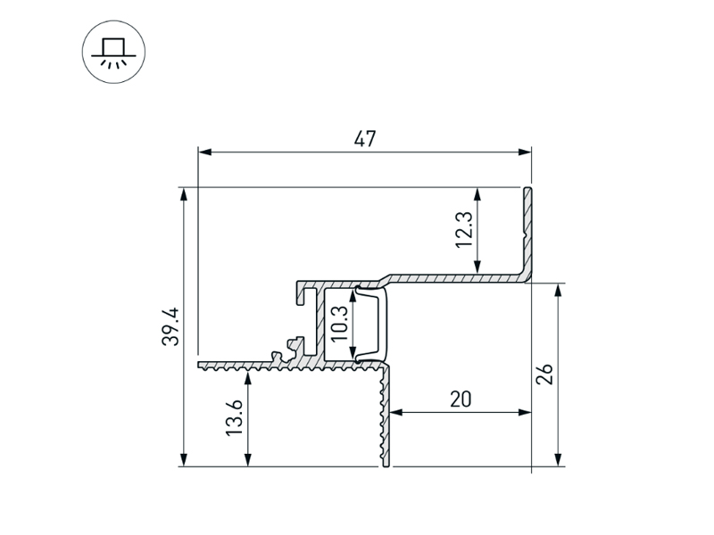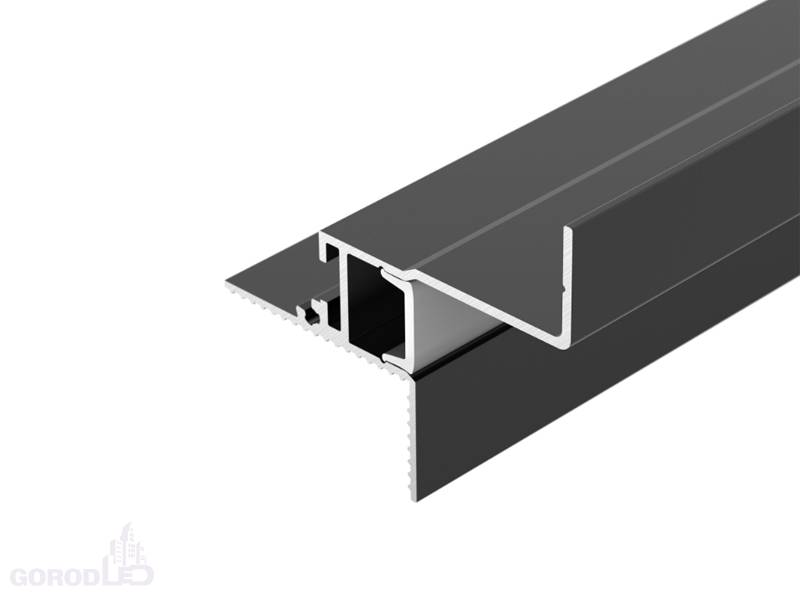 Алюминиевый анодированный встраиваемый профиль для светодиодных лент и линеек. Цвет - черный. Габаритные размеры (L×W×H): 3000х47х39,4 мм. Ширина площадки для ленты 10,3 мм. Экраны, заглушки и другие аксессуары приобретаются отдельно. Цена за 1 метр.