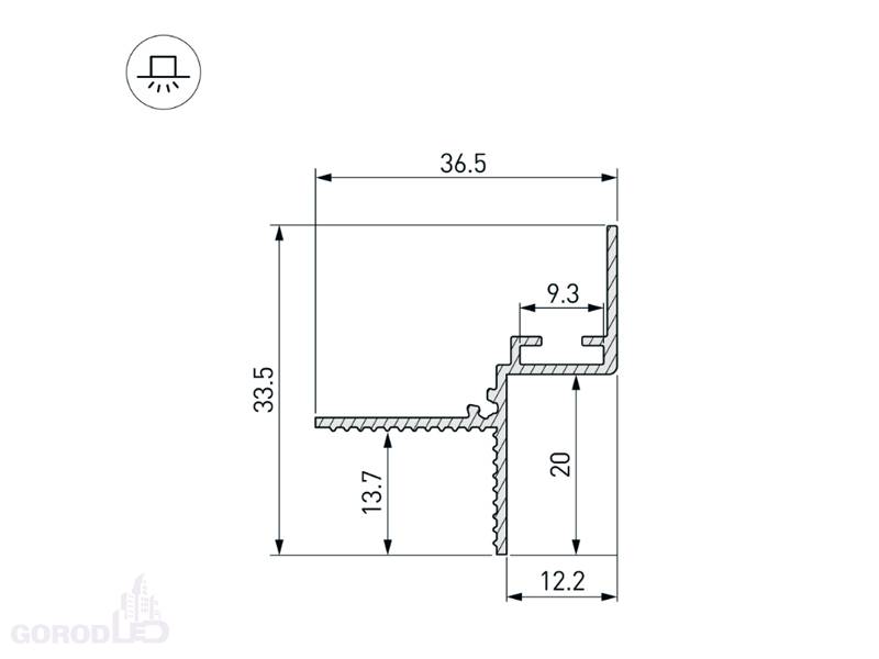 Алюминиевый анодированный встраиваемый профиль для светодиодных лент и линеек. Цвет - черный. Габаритные размеры (L×W×H): 3000х36,5х33,5 мм. Экраны, заглушки и другие аксессуары приобретаются отдельно. Цена за 1 метр.