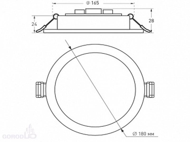 Светодиодная панель 18Вт, белый круглый корпус. Св.поток 1440-1620лм, CRI(Ra)>80, угол 100°. Размер Ф180x24 мм, установка в отверстие 165 мм. IP44. Питание AC 110-240V, 18Вт, DC500mA 32...40V, драйвер в комплекте.