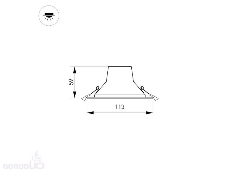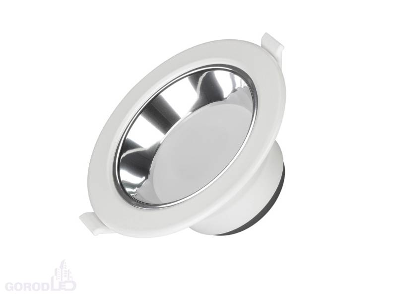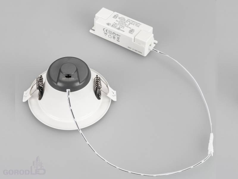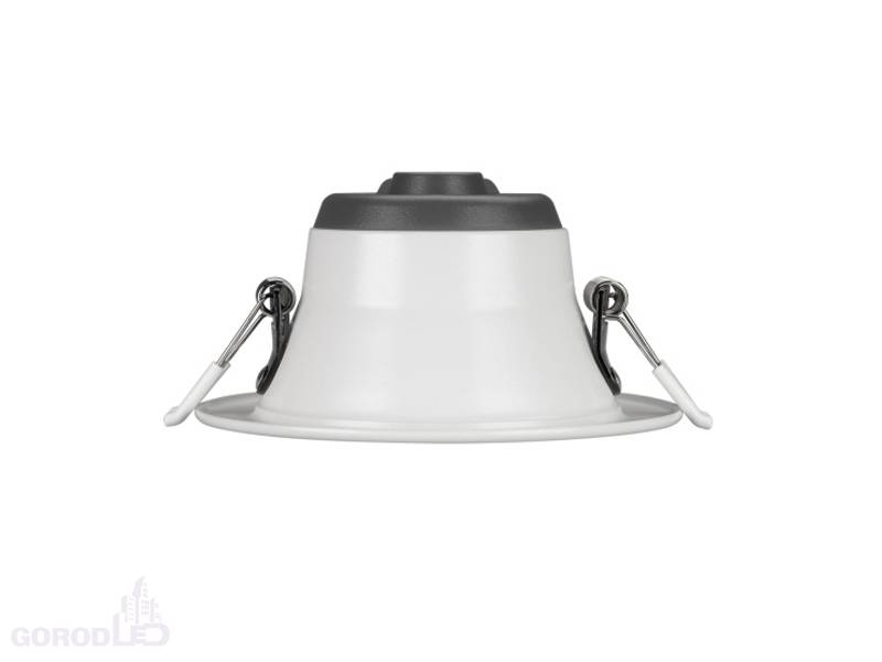 Светильник с высокой светоотдачей, световым потоком 880 лм и углом излучения 80° обеспечивает равномерное освещение без мерцания и видимости точек светодиодов. Светильник встраивается в установочное отверстие Ø90–102 мм с помощью удобных креплений.