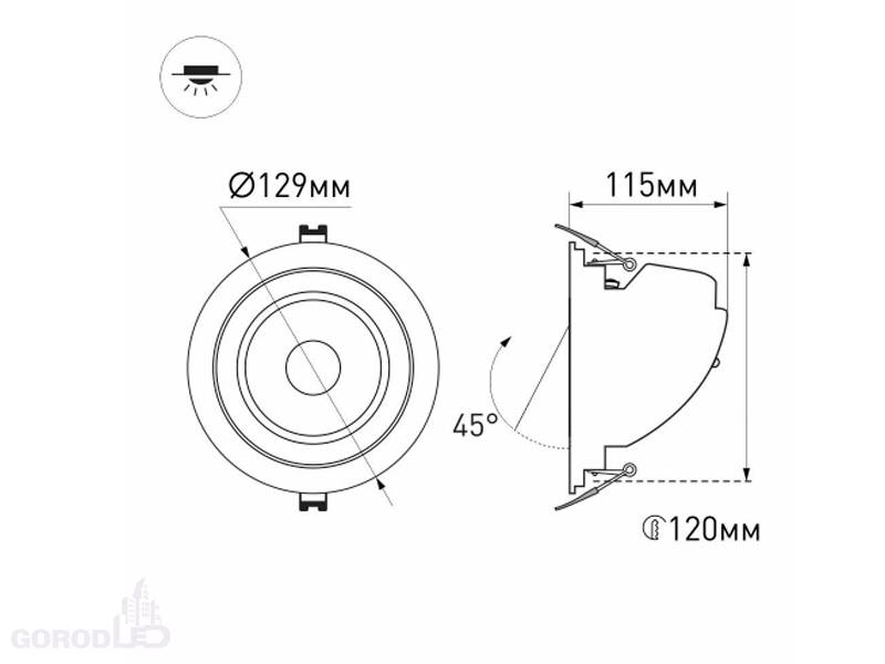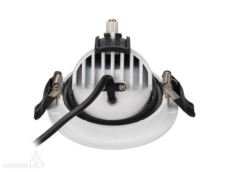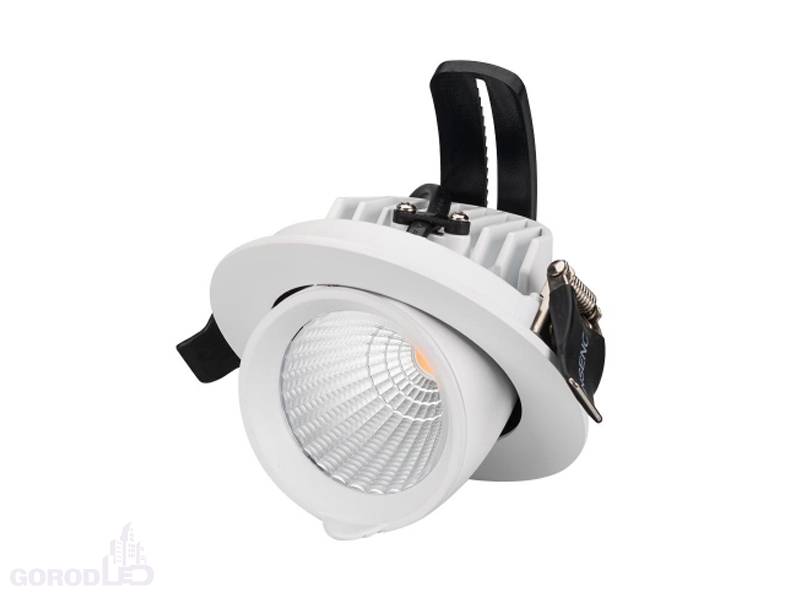 Встраиваемый поворотный круглый светильник, угол 38° / 20Вт. Цвет холодный белый 6000К, дневной белый 4000К, теплый белый 3000К, нейтральный белый 5000К, световой поток холодный белый 1600-1800лм, дневной белый 1600-1800лм, теплый белый 1600-1800лм, нейтральный белый 1600-1800лм. CRI>90. Питание AC180-240V, драйвер в комплекте 500mA 27-42V). Размеры DxH: Ø129х115мм, отверстие для установки 120мм.