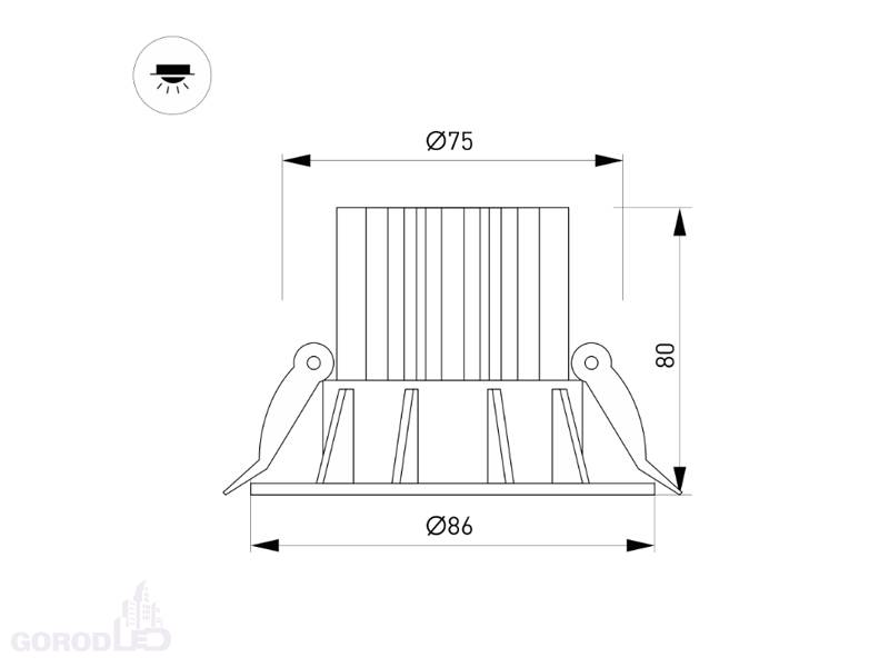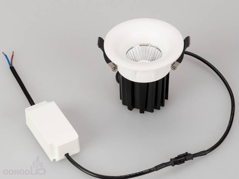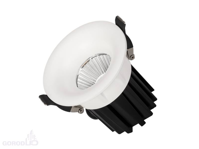 Встраиваемый светильник мощностью 10 Вт, с дневным цветом свечения (4000 К), теплым свечением (3000 К) и низким коэффициентом дискомфорта, благодаря чему достигается комфортное освещение. Светильник с высокими индексом цветопередачи CRI>90 и световой эффективностью 88 лм/Вт, световым потоком 880 лм и узким углом излучения 36° предназначен для направленного освещения торговых, коммерческих, жилых и других помещений. Компактный корпус с размерами Ø86хН80 мм выполнен из алюминия в белом или черном цвете и имеет пылевлагозащиту на уровне IP54, что позволяет применять модель в помещениях с высоким уровнем влажности и запыленности. Светильник легко устанавливается с помощью пружин в монтажное отверстие Ø 75 мм. Драйвер поставляется в комплекте, позволяя безопасно и быстро подключать светильник напрямую к сети переменного тока 230 В. Пульсация менее 1% обеспечивает равномерное освещение без мерцания.
