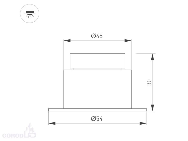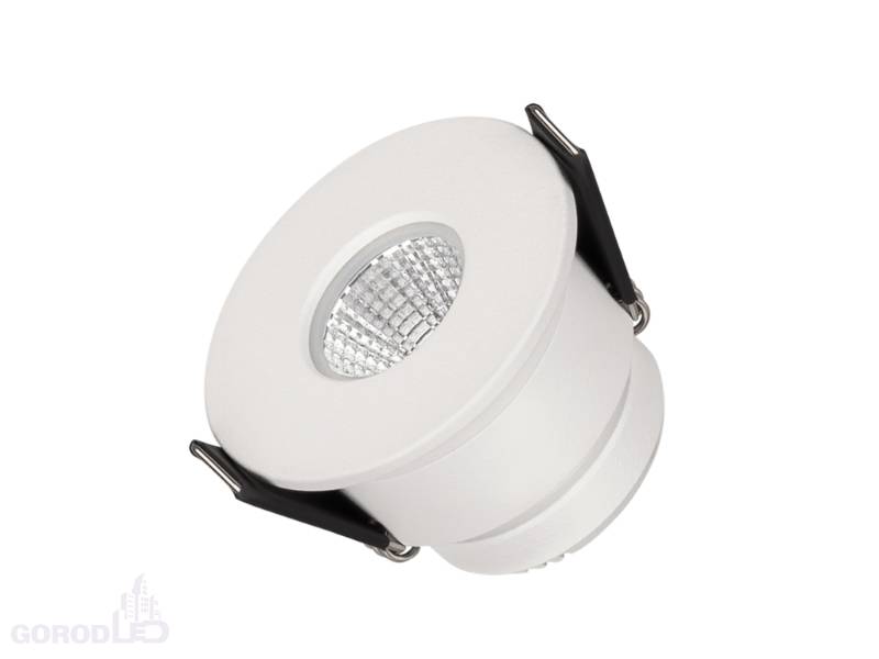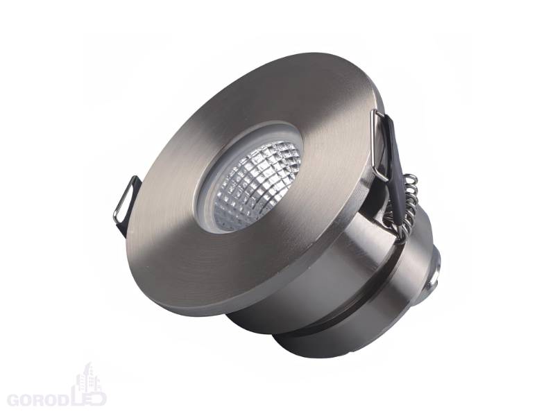 Встраиваемый светильник мощностью 5 Вт, с дневным цветом свечения (4000 К) и низким коэффициентом дискомфорта, благодаря чему достигается комфортное освещение. Светильник с высокими индексом цветопередачи CRI>90 и световой эффективностью 80 лм/Вт, световым потоком 400 лм и узким углом излучения 38° предназначен для направленного освещения торговых, коммерческих, жилых и других помещений. Компактный корпус с размерами Ø54хН30 мм выполнен из алюминия в белом цвете или цвете никель и имеет пылевлагозащиту на уровне IP54, что позволяет применять модель в помещениях с высоким уровнем влажности и запыленности. Светильник легко устанавливается с помощью пружин в монтажное отверстие Ø 45 мм. Драйвер поставляется в комплекте, позволяя безопасно и быстро подключать светильник напрямую к сети переменного тока 230 В. Пульсация менее 2% обеспечивает равномерное освещение без мерцания.