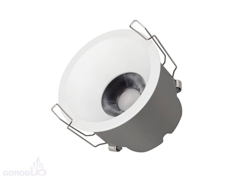 Встраиваемый светильник даунлайт. Мощность 15 Вт, св. поток 1260 лм, 84 лм/Вт, теплый 3000 K, дневной 4000 К, CRI>90, угол 24°, напряжение питания 230 В. Белый или черный круглый корпус из алюминия, степень защиты IP20. Размер: диаметр 106 мм, высота 63 мм. Монтаж встраиваемый, установочное отверстие: диаметр 95 мм. Драйвер 27-40 В, 350 мА, пульсация <2%.