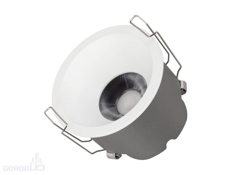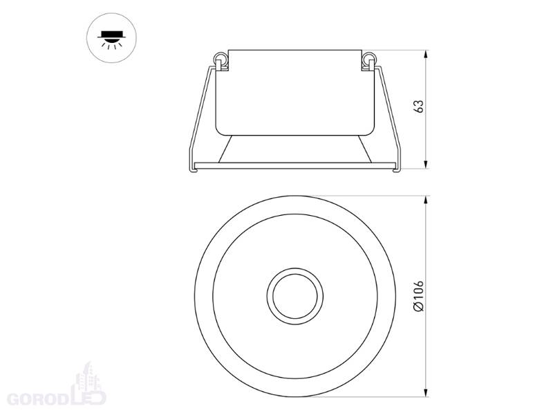 Встраиваемый светильник даунлайт. Мощность 15 Вт, св. поток 1260 лм, 84 лм/Вт, теплый 3000 K, дневной 4000 К, CRI>90, угол 50°, напряжение питания 230 В. Белый или черный круглый корпус из алюминия, степень защиты IP20. Размер: диаметр 106 мм, высота 63 мм. Монтаж встраиваемый, установочное отверстие: диаметр 95 мм. UGR<14. Драйвер 27-40 В, 350 мА, пульсация <2%.