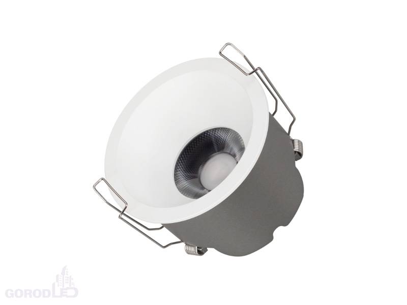 Встраиваемый светильник даунлайт. Мощность 10 Вт, св. поток 980 лм, 98 лм/Вт, дневной 4000 K, теплый 3000 К,ультратеплый 2700 К, CRI>90, угол 24°, напряжение питания 230 В. Черный или белый круглый корпус из алюминия, степень защиты IP20. Размер: диаметр 82 мм, высота 53 мм. Монтаж встраиваемый, установочное отверстие: диаметр 75 мм. Драйвер 30-42 В, 250 мА, пульсация <2%.