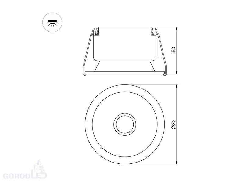 Встраиваемый светильник даунлайт. Мощность 10 Вт, св. поток 980 лм, 98 лм/Вт, теплый 3000 K, дневной 4000 К,ультратеплый 2700 К, CRI>90, угол 50°, напряжение питания 230 В. Белый или черный круглый корпус из алюминия, степень защиты IP20. Размер: диаметр 82 мм, высота 53 мм. Монтаж встраиваемый, установочное отверстие: диаметр 75 мм. UGR<14. Драйвер 30-42 В, 250 мА, пульсация <2%.