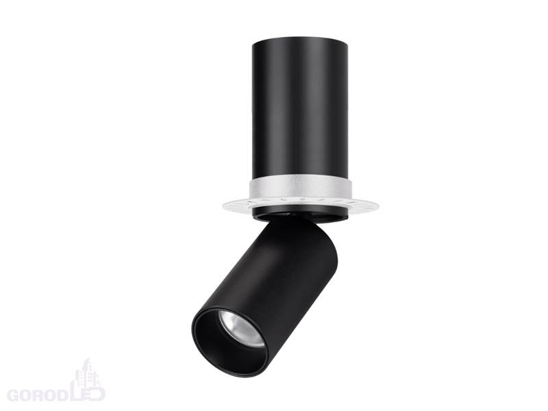Светильник встраиваемый поворотный. Мощность 7 Вт, св. поток 490 лм, 70 лм/Вт, теплый 3000 K, дневной 4000 К, CRI>90, угол 36°, напряжение питания 230 В. Белый или черный круглый корпус из алюминия, экран PMMA, степень защиты IP40. Размер: диаметр 35 мм, высота светового модуля 65 мм. Угол поворота 360°, угол наклона 90°. Монтаж встраиваемый, установочное отверстие: диаметр 55 мм, глубина 73 мм. Драйвер в комплекте 27-50 В, 150 мA, пульсация <1%.