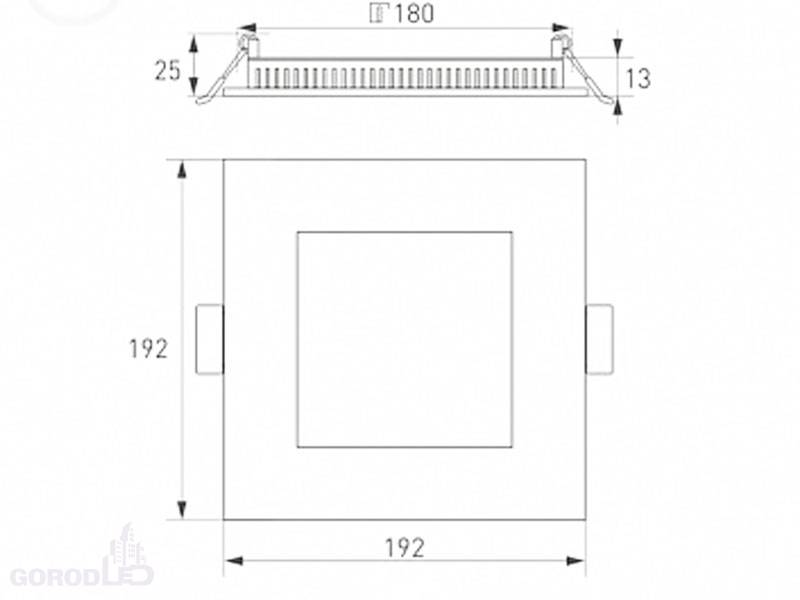 Тонкая панель 18Вт, белый квадратный корпус. Св.поток 1350-1440лм, CRI(Ra)>80, угол 120°. Размер 192x192мм, высота корпуса 13мм, установка в отверстие 180x180мм. Питание AC 110-240V, 18Вт, драйвер в комплекте (DC300mA, 50-60V).
